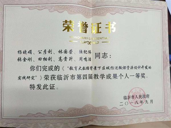 近日,由拓普公司副總經理張金剛等人組成的教學成果課題小組課題“教育大數據背景下區域推進微課資源設計開發的實踐研究”榮獲“第四屆臨沂市市級教學成果獎。